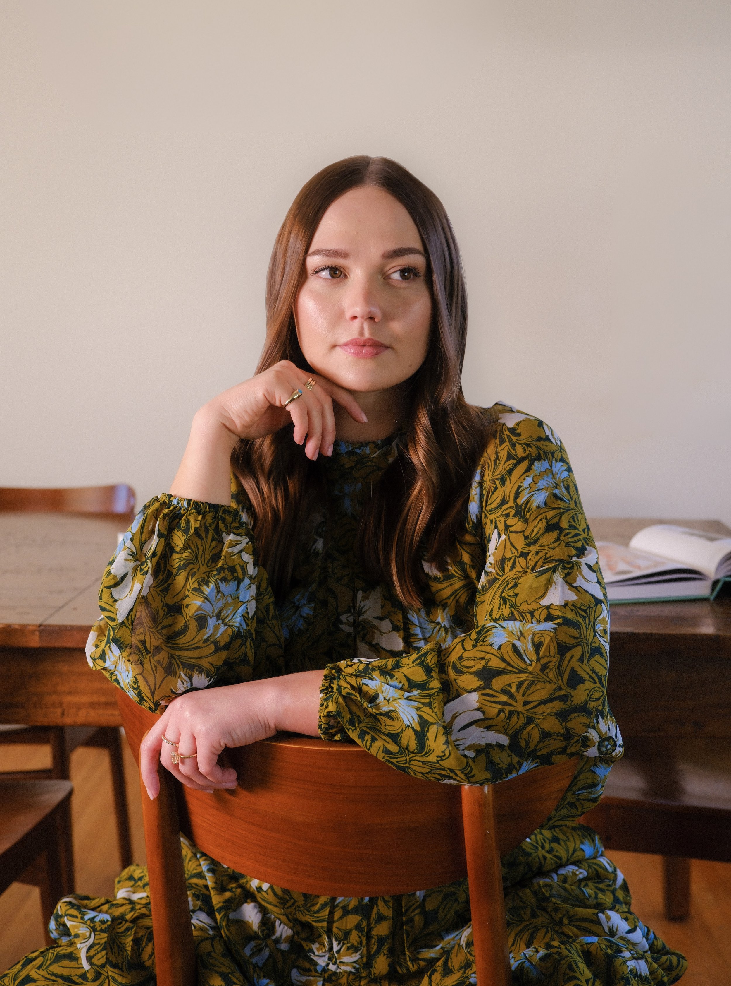 “I loved working with Courtney, who took all of the stunning photos. She came prepared with a vision board, a gorgeous floral dress for me to try, and the best vibes ever. My favorite shoot I’ve ever done by far,”